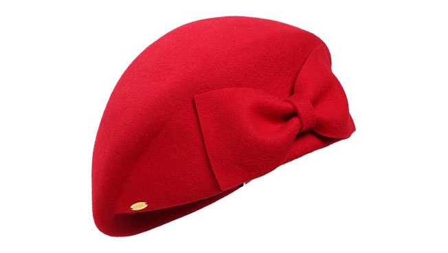 100%純羊毛帽子,圓形的弧度延伸到一邊,羊毛的保暖和蝴蝶結(jié)的生動顯得相得益彰。